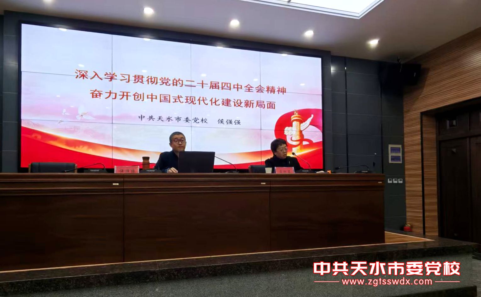 教研部主任侯强强为麦积区委党校全体教职工作了题为《深入学习贯彻党的二十届四中全会精神,奋力开创中国式现代化建设新局面》的辅导报告。麦积区委党校的三位青年教师展示了他们的新专题《习近平谈治国理政第五卷》《践行嘱托担使命,振兴果业惠民生》《以习近平总书记关于社会治理的重要论述为指导,全面提升社会治理现代化水平》,哲学与科学社会主义教研部的教师从专题的名称、专题的结构优化、课件的呈现效果、专题的陈述风格等方面对每个专题进行点评并提出中肯的意见建议。